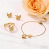 Frosted Butterfly Jewelry Set: 316L Stainless Steel / Titanium Steel Necklace, Stud Earrings, Ring, Bracelet, and Anklet O-Ring Chain
