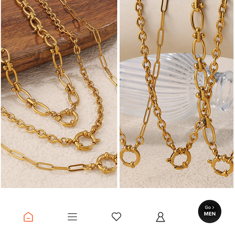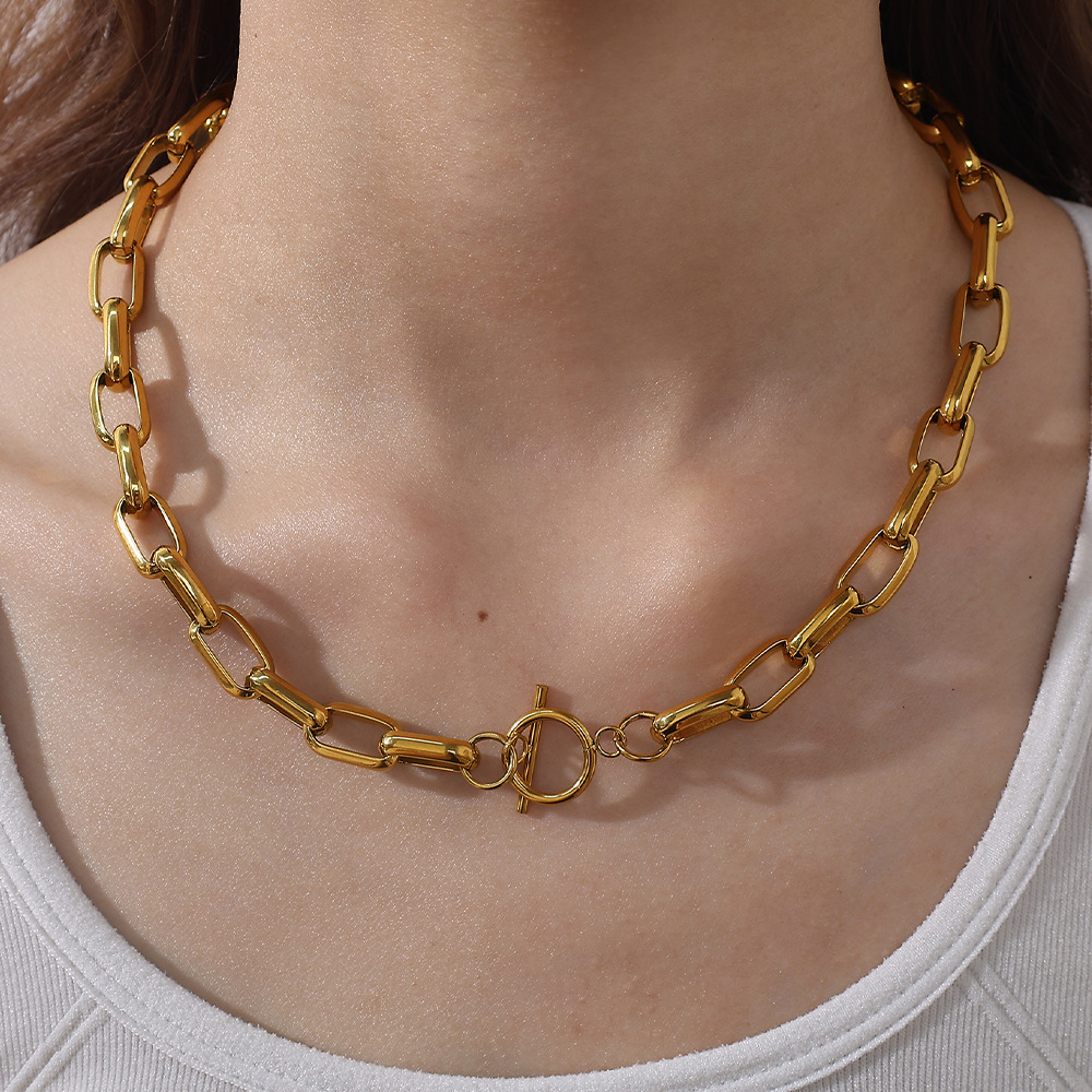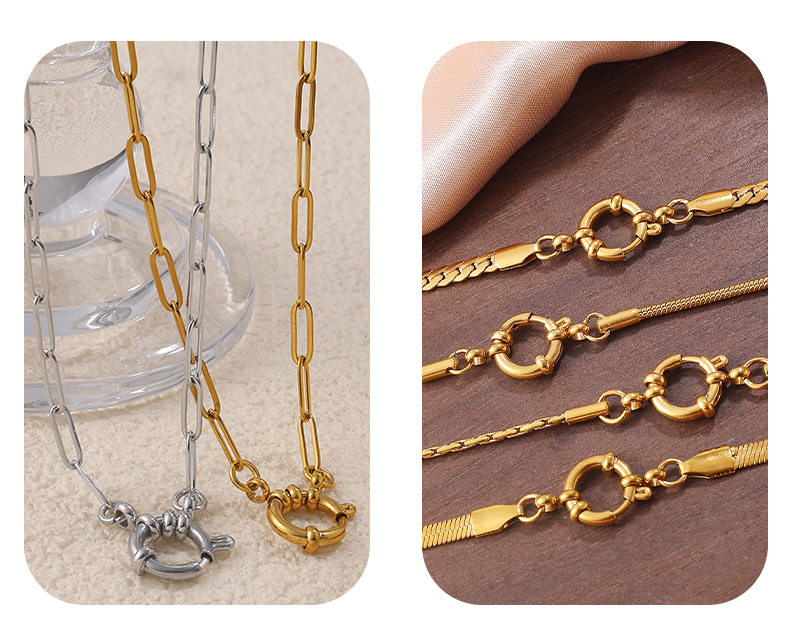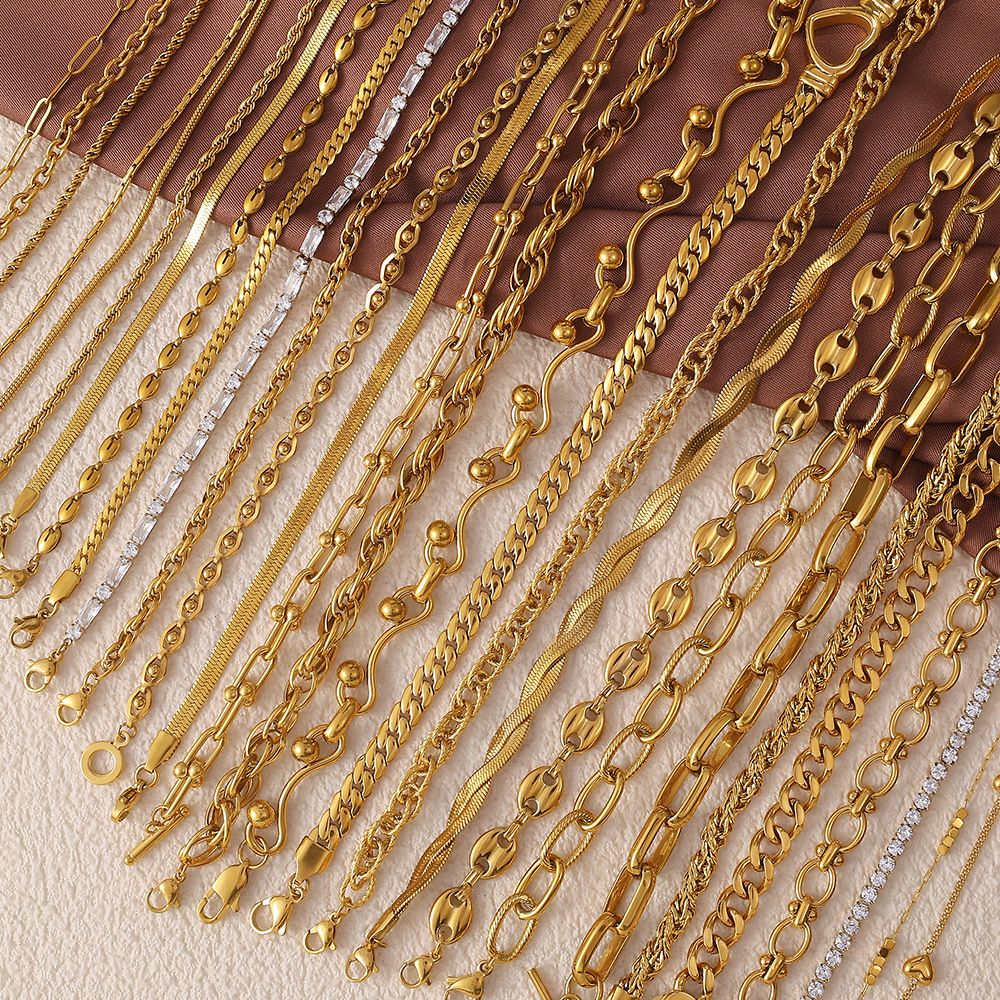 Retro Necklace for Women, High-End, Simple Style, Various Designs, Chain Stainless Steel 18K Gold Necklace