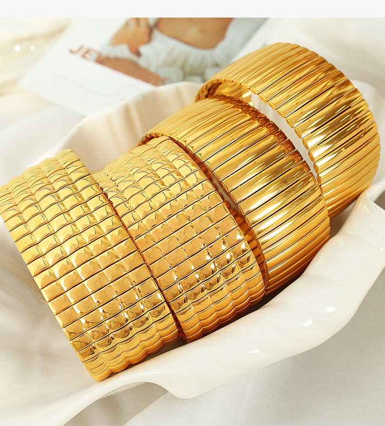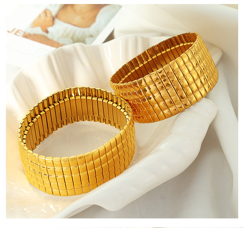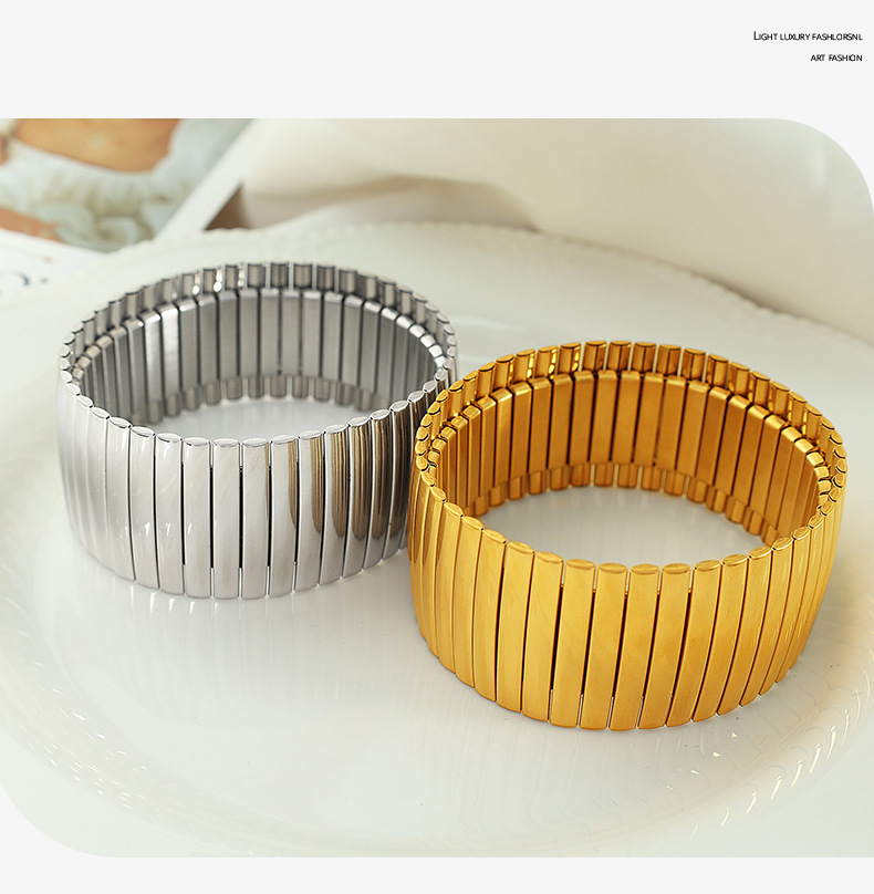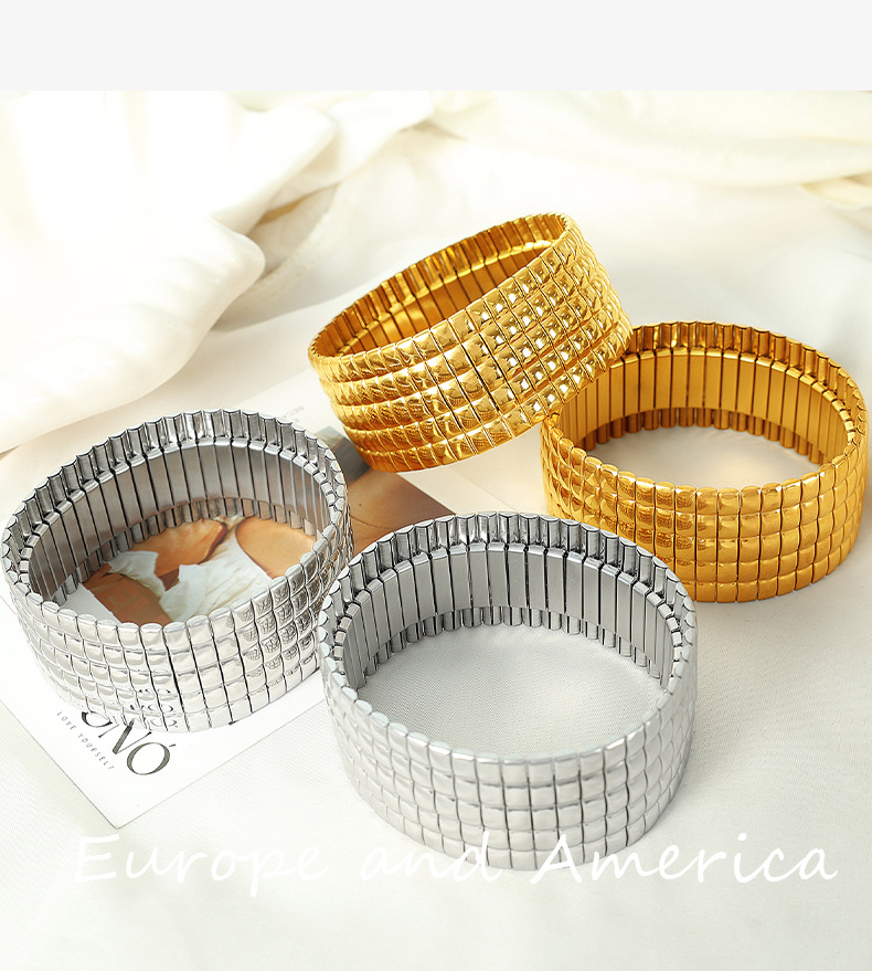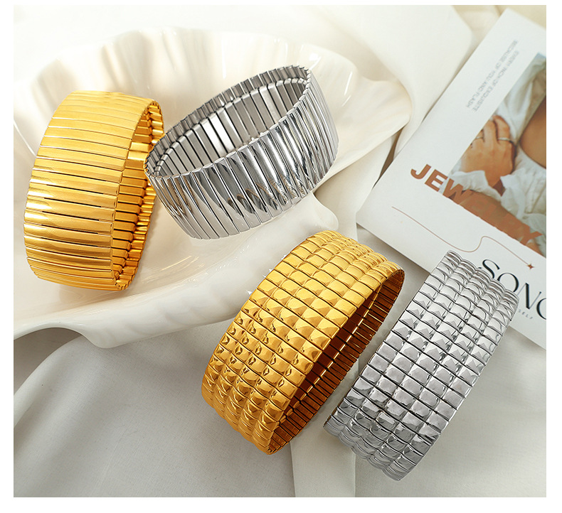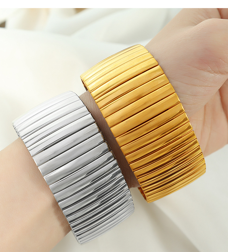 SZ56 gold stretch Plaid wide bracelet, SZ56 silver stretch Plaid wide bracelet, SZ57 gold stretch vertical stripes wide bracelet, SZ57 silver elastic vertical stripe wide bracelet |