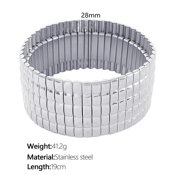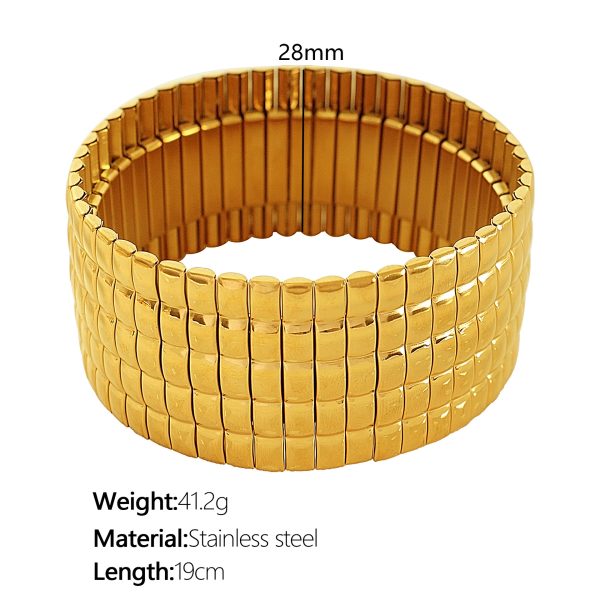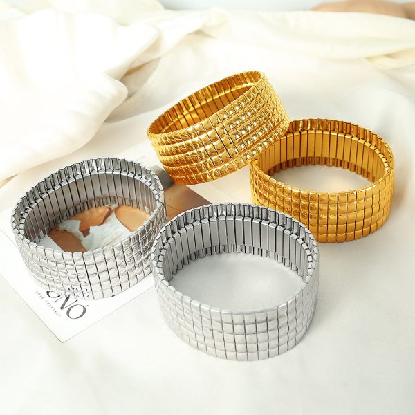 SZ56 gold stretch Plaid wide bracelet, SZ56 silver stretch Plaid wide bracelet, SZ57 gold stretch vertical stripes wide bracelet, SZ57 silver elastic vertical stripe wide bracelet |