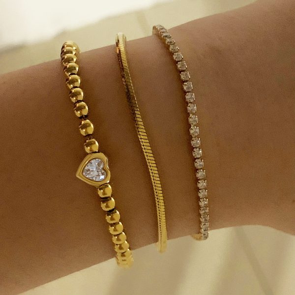 Tennis chain gold bracelet B708, Tennis chain silver bracelet B708, Love bead chain gold bracelet B175, Love bead chain silver bracelet B175, Octagonal snake bone chain gold bracelet B564, Octagonal snake bone chain silver bracelet B564, Bracelet gold bracelet A1048, Bracelet silver bracelet A1048