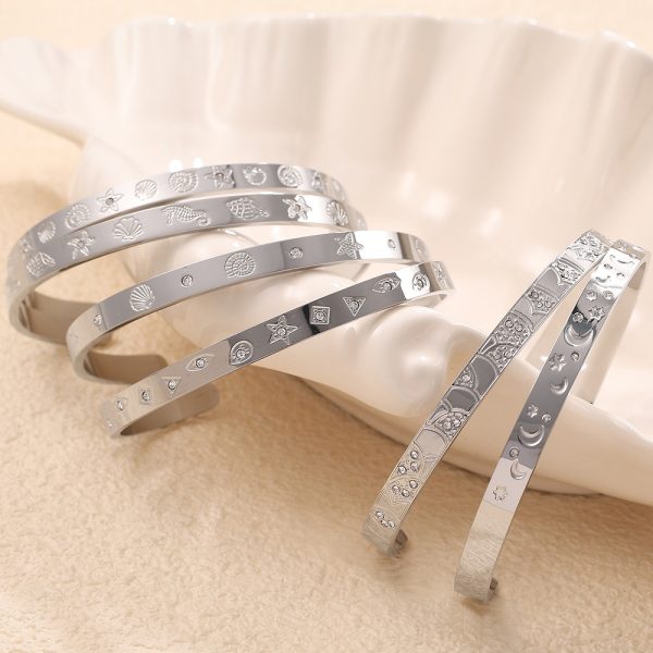 Stainless steel inlaid round zircon marine series stainless steel high-end sense open bracelet – taoyibiyi