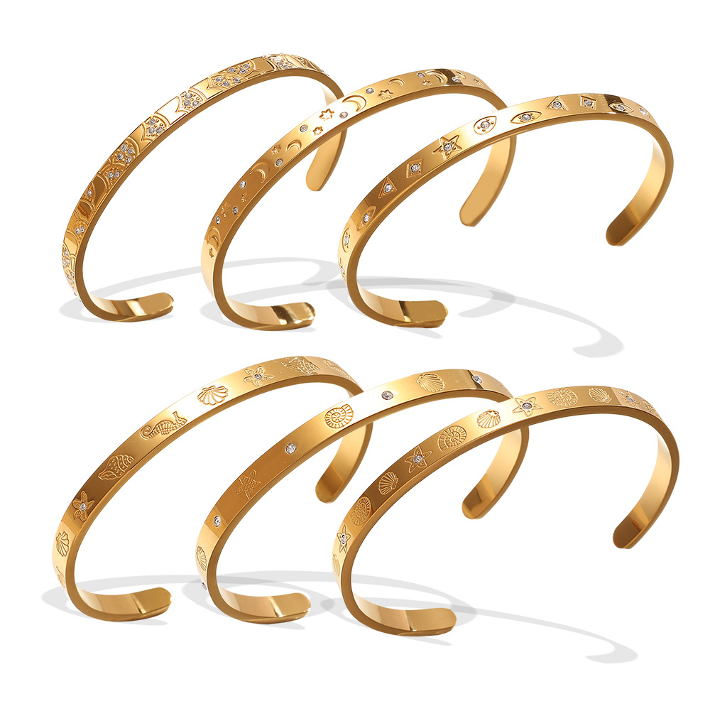 Home Shop BRACELET Stainless steel inlaid round zircon marine series stainless steel high-end sense open bracelet