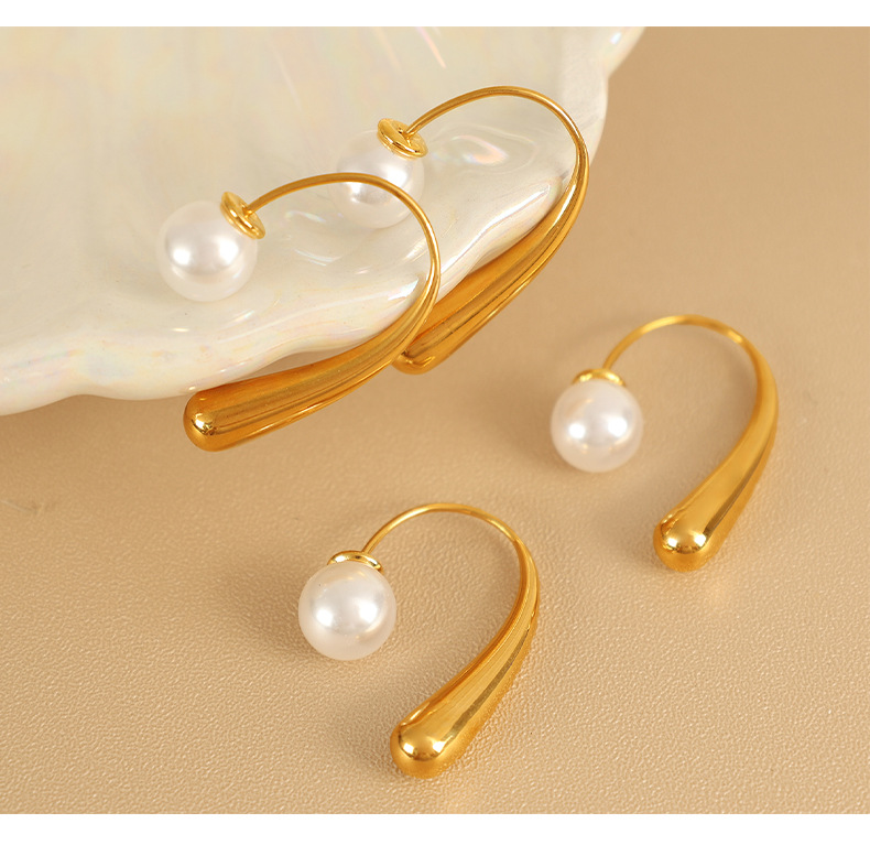 Unique design drop-shaped 18K gold-plated pearl earrings – taoyibiyi
