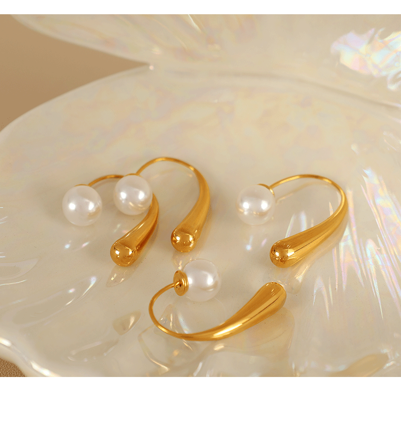 Unique design drop-shaped 18K gold-plated pearl earrings